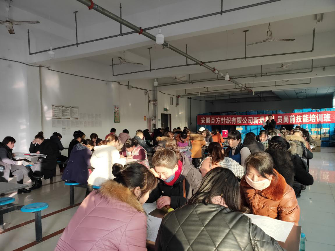 為了進(jìn)一步推動(dòng)企業(yè)發(fā)展,落實(shí)民生工程政策,在靈璧縣人力資源保障局領(lǐng)導(dǎo)的指導(dǎo)下,我校組織的安徽百方針織有限公司服裝制作工(初級(jí))崗前技能培訓(xùn)班開班典禮于2019年11月7日下午13時(shí)在百方公司隆重舉行。