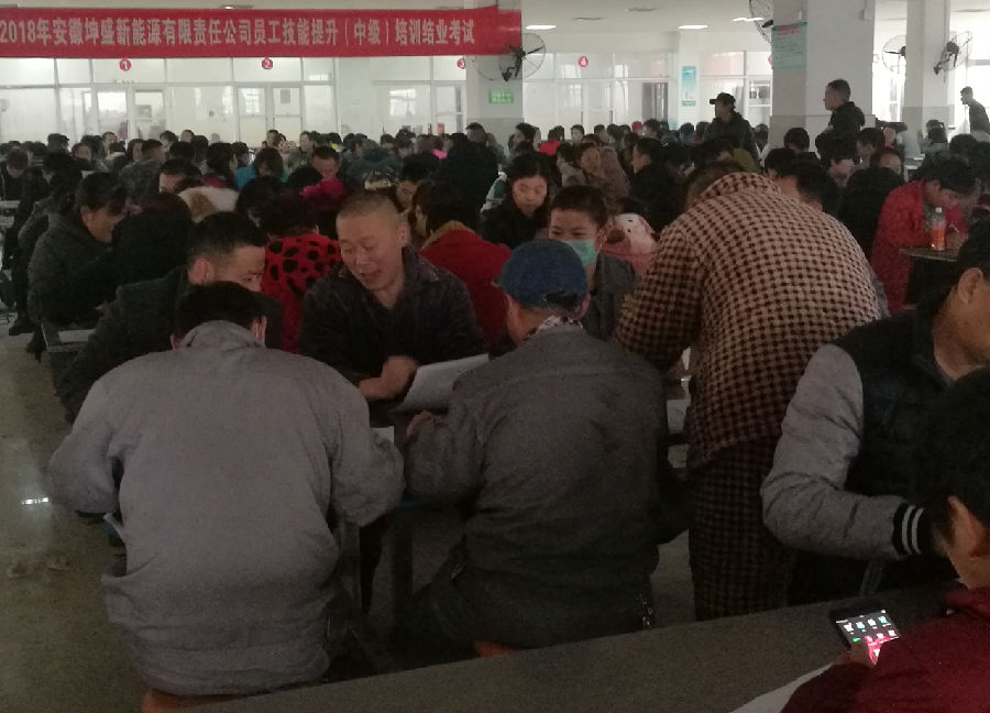2018年11月21日下午,安徽坤盛新能源有限責(zé)任公司鉛酸蓄電池制作工技能提升培訓(xùn)結(jié)業(yè)考試在坤盛公司舉行,坤盛公司馬勝利廠長、環(huán)安部趙永鋒部長、人力資源部趙珊珊部長親臨考場督查。