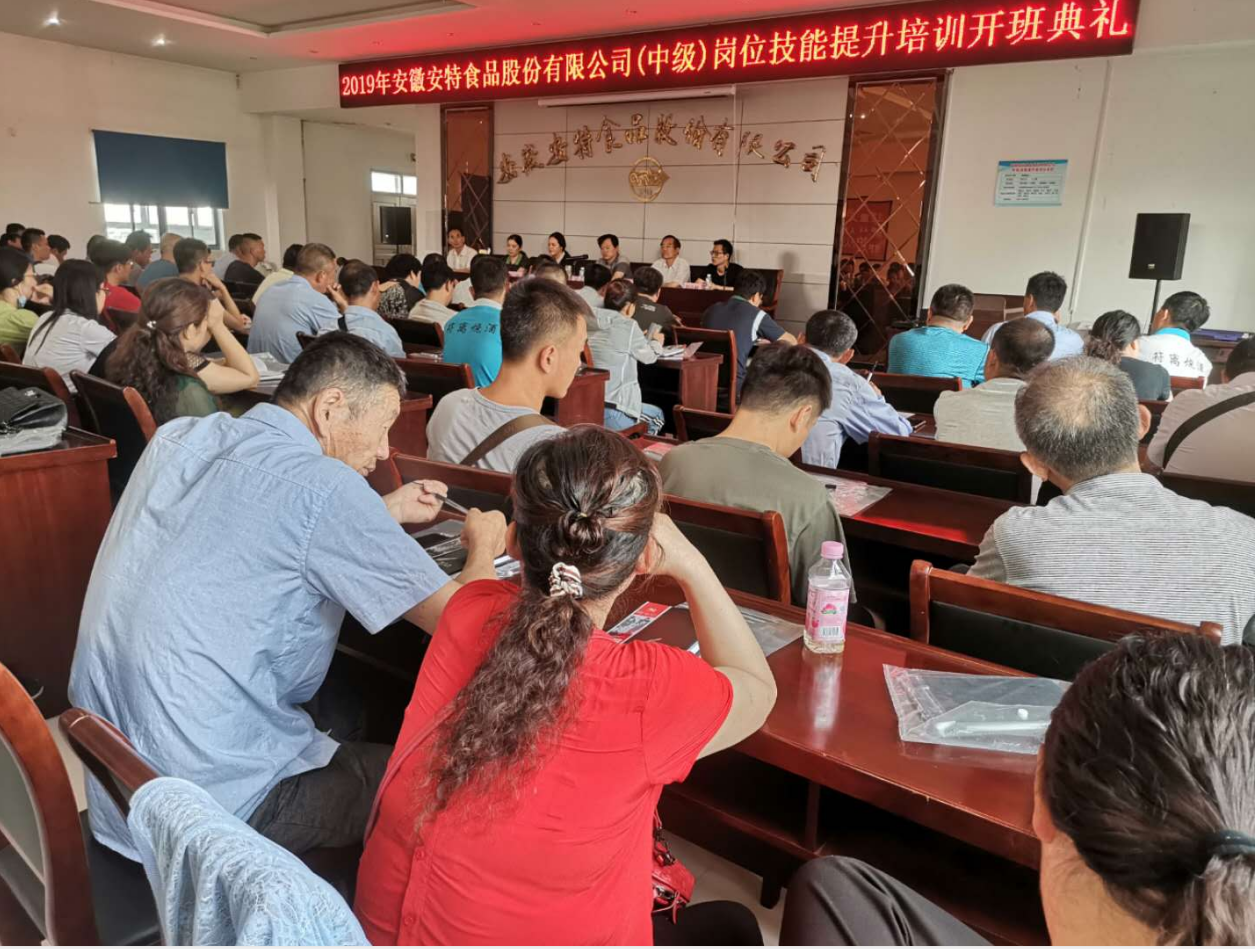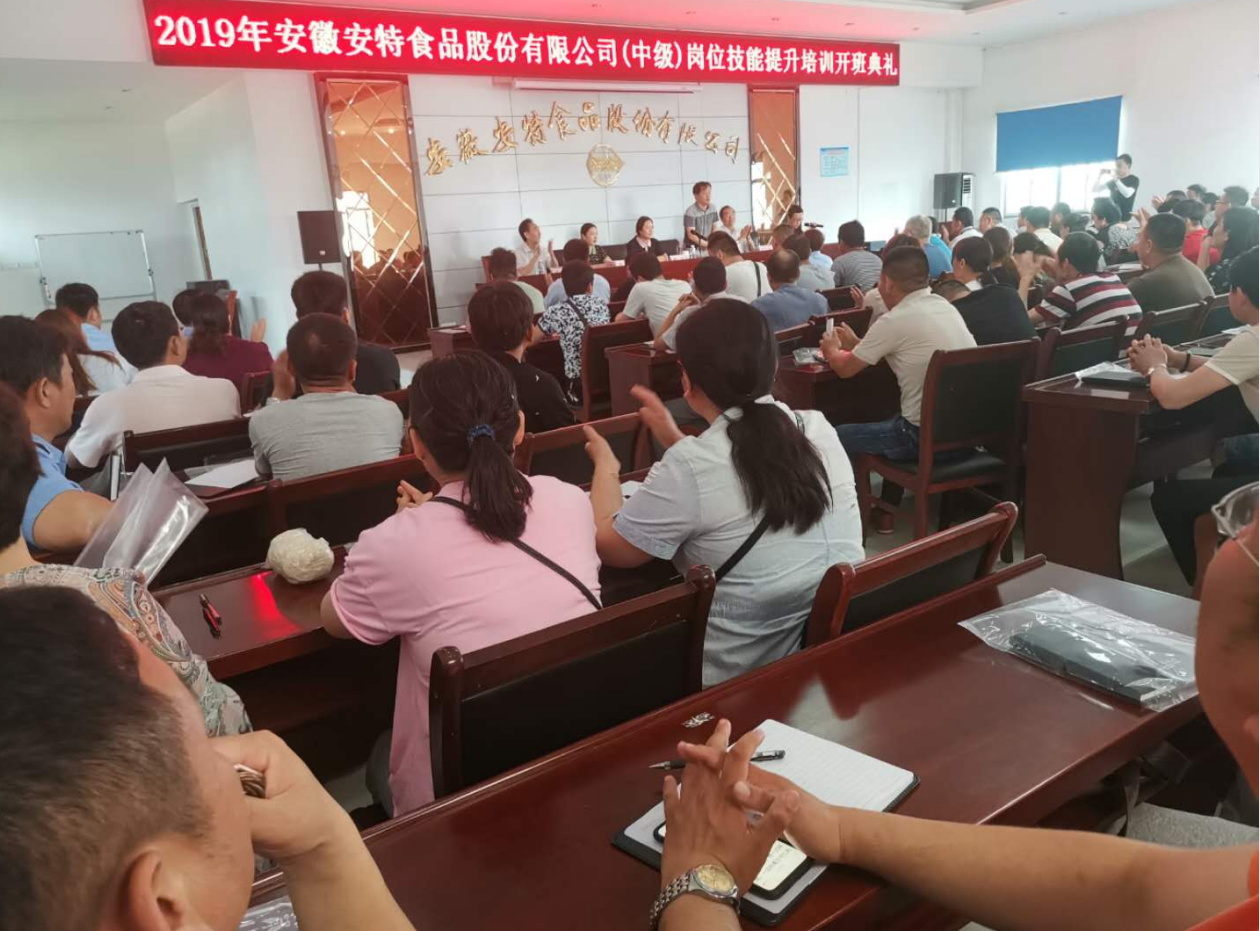 安徽安特食品股份有限公司酒精釀造工(中級(jí))崗位技能提升培訓(xùn)班開(kāi)班典禮于2019年7月5日上午9時(shí),在安特公司培訓(xùn)教室隆重舉行。