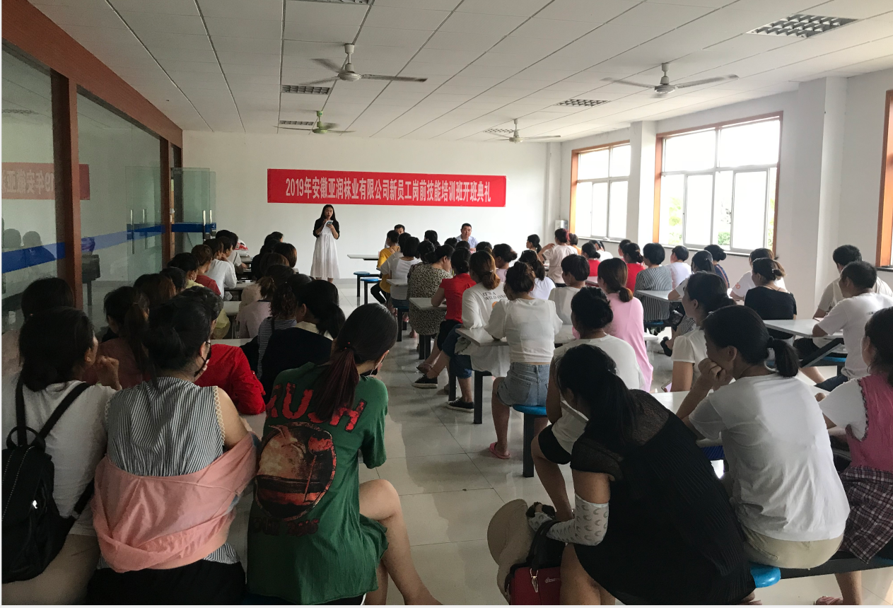 為了進(jìn)一步推動(dòng)企業(yè)發(fā)展,落實(shí)民生工程政策,在靈璧縣人力資源保障局領(lǐng)導(dǎo)的指導(dǎo)下,我校組織的安徽亞潤(rùn)襪業(yè)有限公司服裝制作工(初級(jí))崗前技能培訓(xùn)班開(kāi)班典禮于2019年7月25日下午13時(shí)在亞潤(rùn)公司隆重舉行。